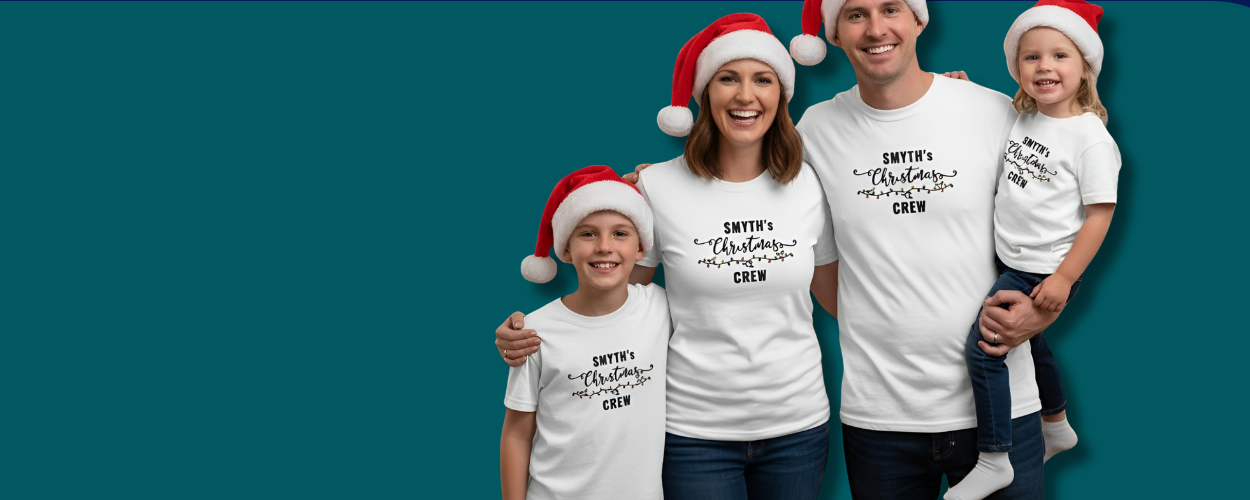 Matching designs across adults, kids, and babies. Make it easy to create matching T-shirts.