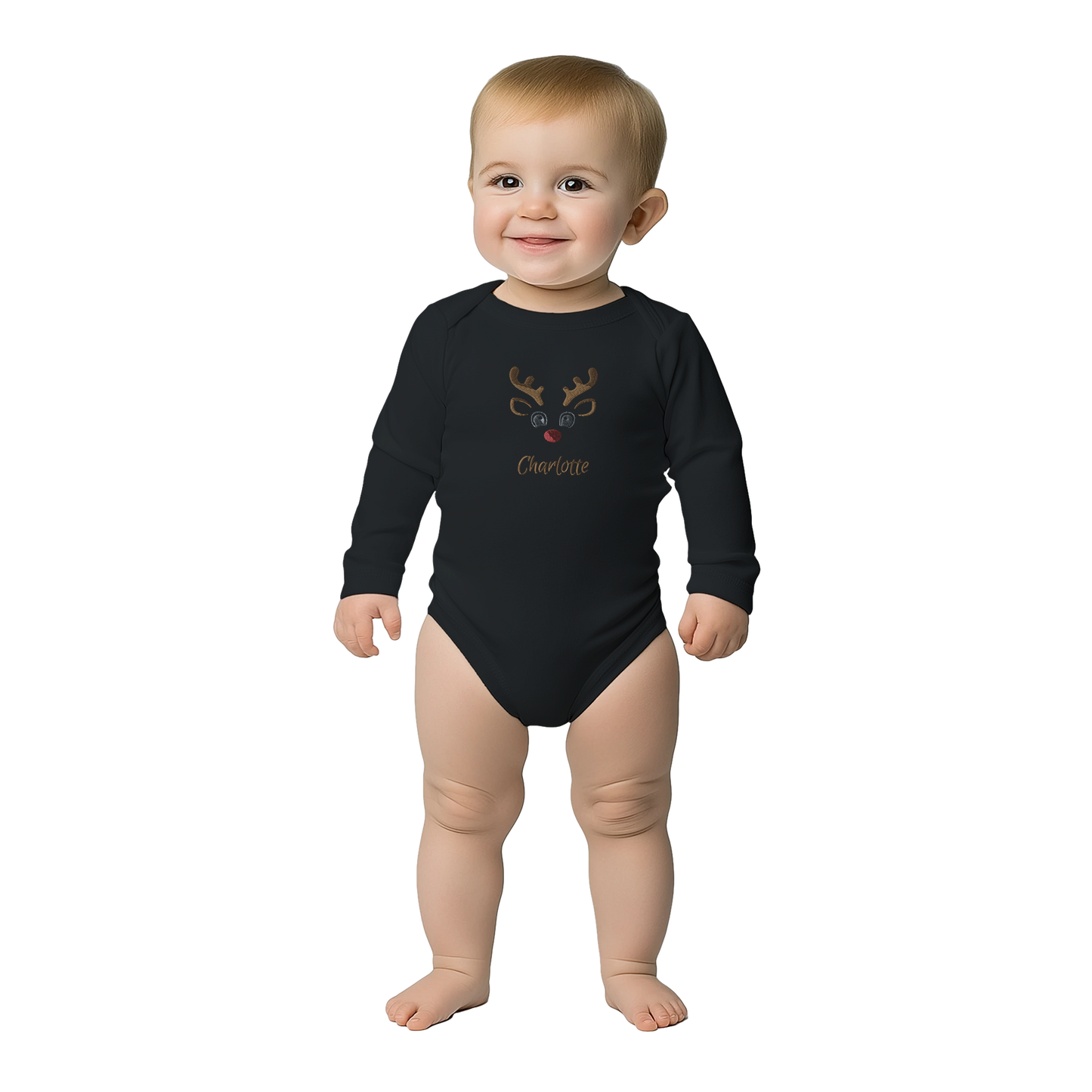 Baby Reindeer Name -Embroidered Long Sleeve Bodysuit