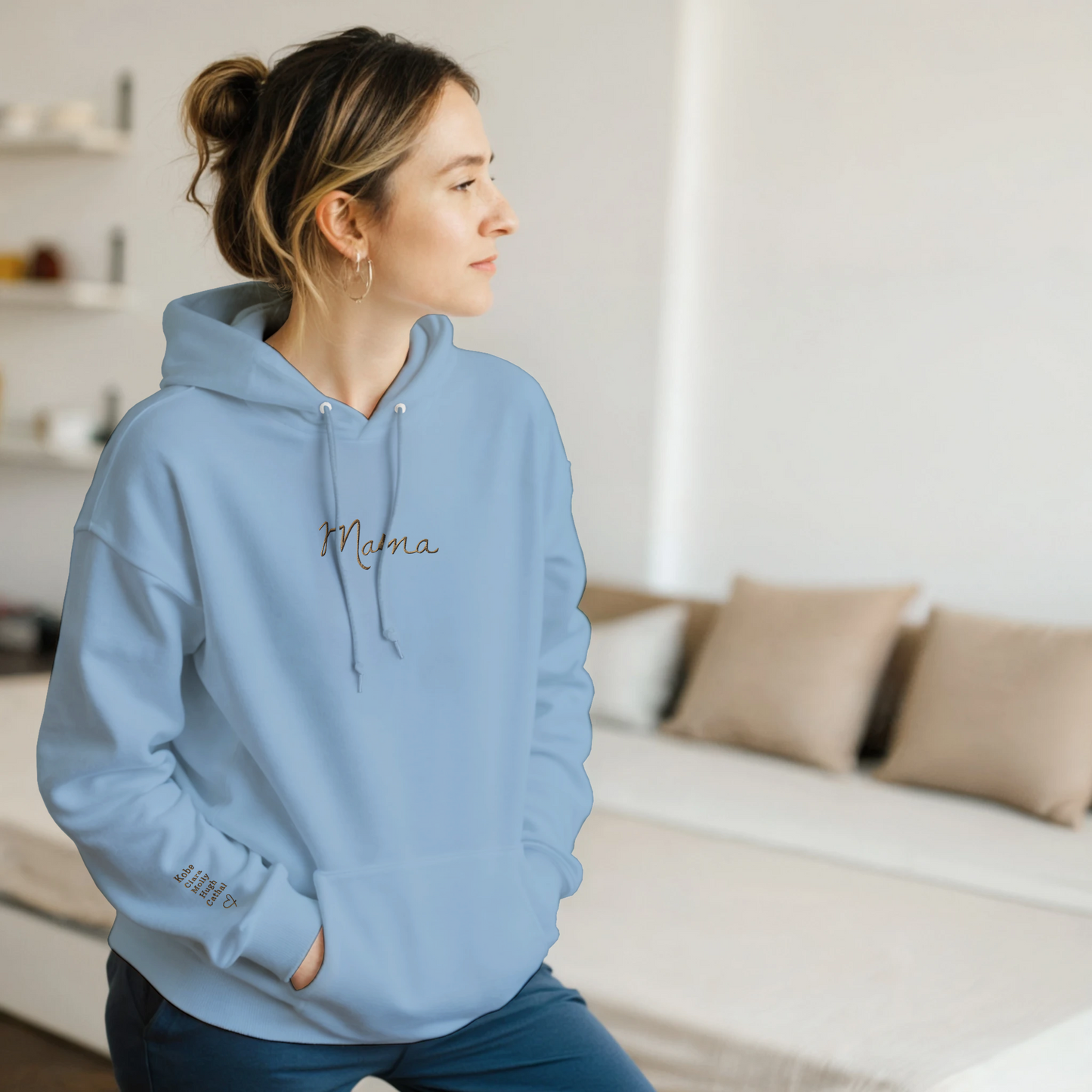 00126 Personalized Embroidered Mama Hoodie – Custom Names on Sleeve